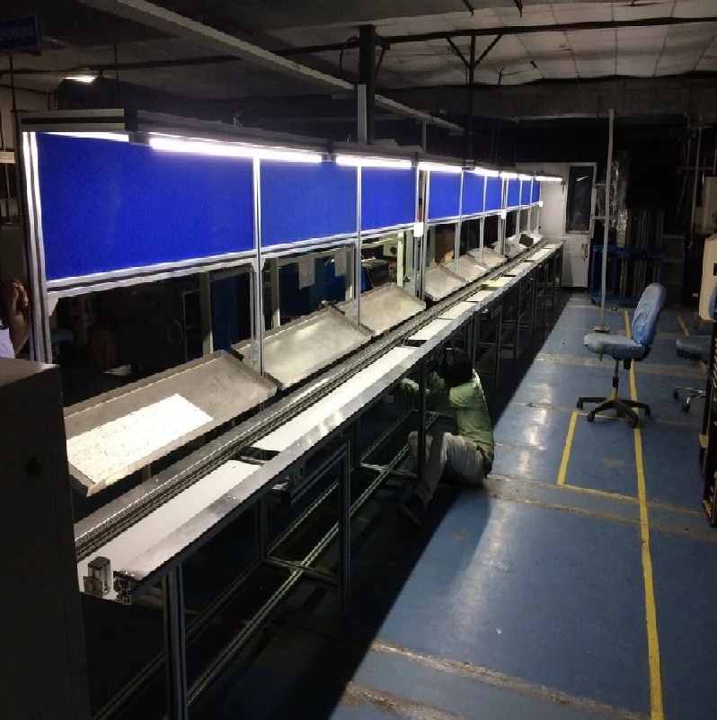 The Aluminum Assembly Line Workstation is a modular, ergonomic solution for streamlined production processes. Built from lightweight yet strong aluminum profiles, it offers adjustable height, integrated tool mounts, and organized storage for efficient workflow. The workstation supports conveyor integration and can include ESD protection for sensitive electronics assembly. Its durable work surface ensures easy cleaning and longevity, making it ideal for automotive, electronics, consumer goods, and medical device manufacturing.