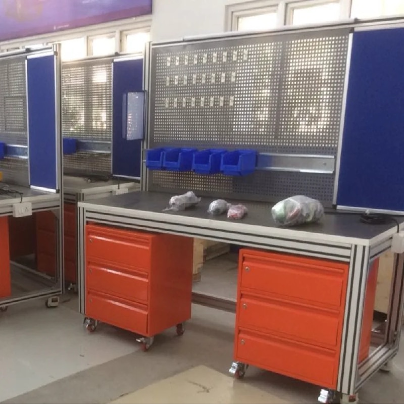 The Industrial Workstation Table is a modular and durable solution built from high-strength aluminum profiles, offering corrosion resistance and a clean, modern design. Its ergonomic structure features adjustable height for operator comfort and supports various accessories like shelves, lighting, tool holders, and power strips. Ideal for electronics assembly, automotive component handling, packaging lines, and quality inspection stations, this workstation provides flexibility for easy reconfiguration, quick installation, and minimal maintenance, making it a cost-effective and eco-friendly choice for industrial environments.